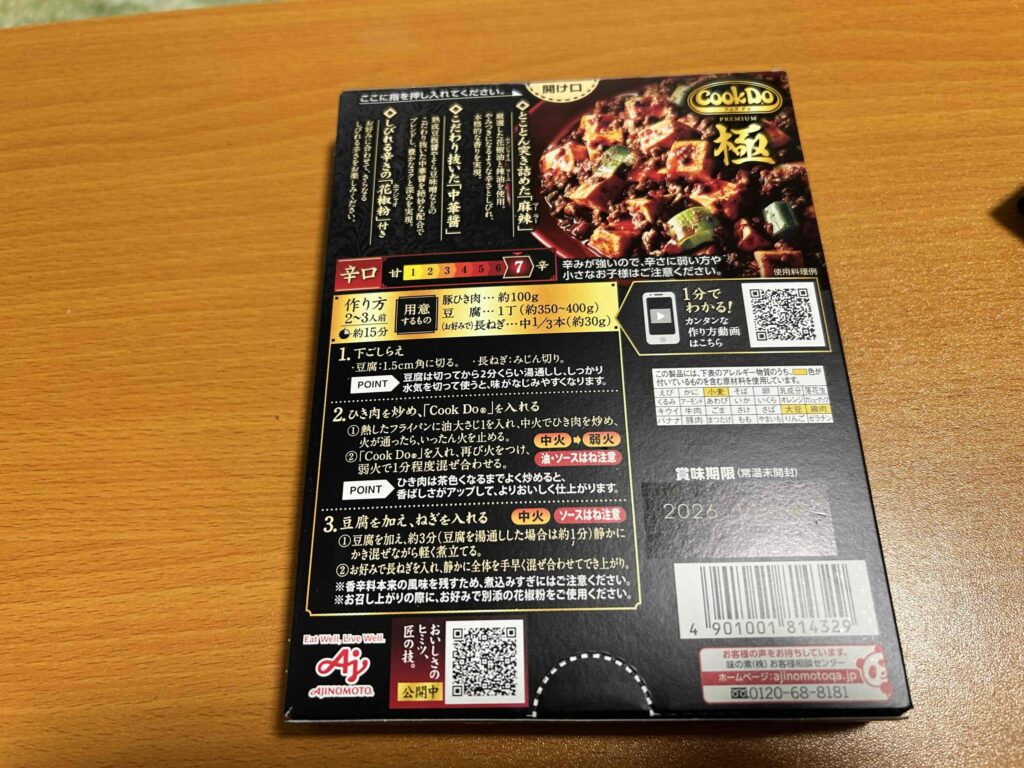 | 商品名 | 味の素 Cook Do 極(プレミアム麻婆豆腐の素) |
